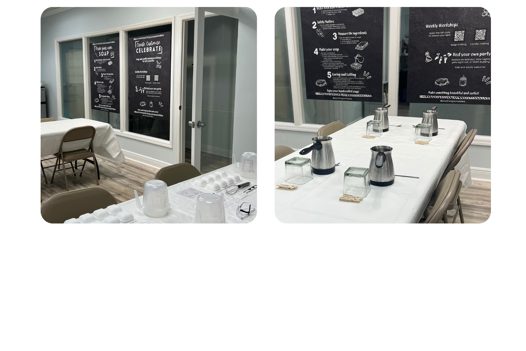 Unleash your creativity and craft your own custom soap bars using natural, plant based oils or create beautiful, hand-poured candles!